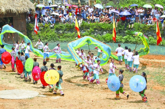 民间文艺队在表演接龙舞,祈祥纳福。 龙艾青 摄