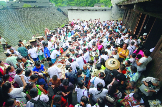 流水席上的特色菜肴,让络绎不绝的八方宾客感受到了苗家人的豪爽好客。 龙恩泽 摄