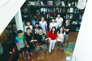 彭少仪(前排右二)和她的团队在工作室(7月13日摄)。