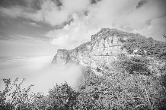 雾涌龙山县八面山燕子洞绝壁,形成一道美丽的风景,游客争相拍照留念。 曾祥辉 摄