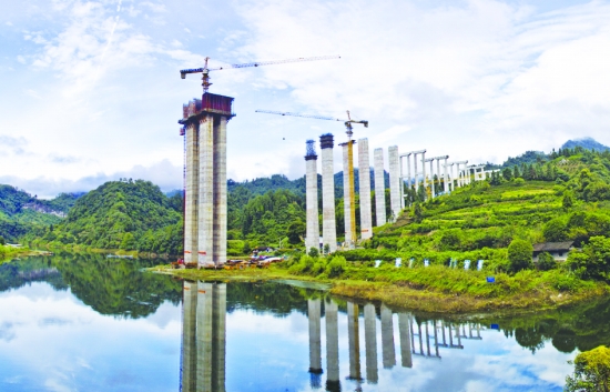 8月15日,古丈县罗依溪镇且茶下村,永(顺)吉(首)高速公路第七合同段桥梁工程现场。永吉高速路穿经古丈县41公里,计划投资41亿, 预计2017年建成通车。建成后,茶乡古丈将告别无高速公路的历史。 覃 勋 张术杰 摄