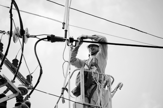 8月14日,永顺县电力公司抢修班的电力工人,冒着高温在10千伏灵湘线上进行电力消缺作业。连日来,该县电力工人战高温、冒酷暑战斗在修护线路和维护电力设施上,确保该县电力“迎峰度夏”。 刘文化 宋 涛 摄