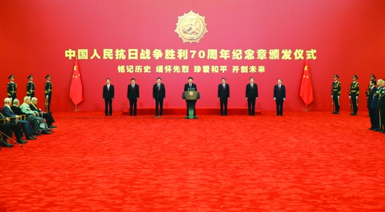 在颁发“中国人民抗日战争胜利七十周年”纪念章仪式上的讲话