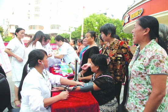 9月1日是第9个“全民健康生活方式日”,泸溪县疾控中心联合慢性病防控成员单位在县城开展“我行动、我健康、我快乐”慢性病防控宣传、咨询、义诊活动,发放宣传资料1000余份,免费测量血压200余人,高血压、高血糖、高血脂和睡眠障碍等防治知识咨询600余人。图为咨询、体检活动现场。 向民贵 袁绍仁 摄