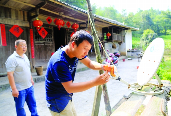 ▲9月1日,龙山县广播电视调频转播检修技术员正在对洛塔乡满湖村老百姓的电视地面接收器进行免费维护。 连日来,龙山县政府组织县文广新局技术员对全县广播电视调频转播塔进行大检修,进村入户对农户电视地面接收器进行信息安全维护,确保生活在崇山峻岭中的土家苗汉同胞,在9月3日都能够从电视里看到在北京举行的纪念抗战胜利70周年大阅兵。 田志波 周金