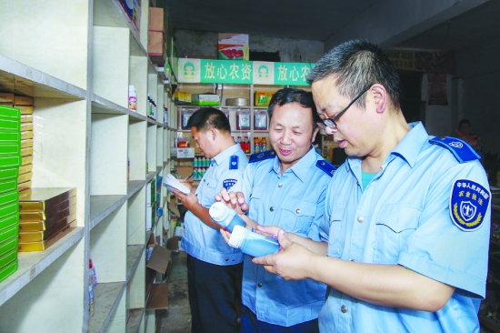 8月23日至28日由省农业委员会组织的湘西区域农业协作执法活动在张家界、怀化、湘西自治州全面开展。这次活动共抽调了100名执法骨干,分成8个组,对湘西区域24个市县的农产品质量和农业投入品进行对口检查。图为第六组执法人员在泸溪县开展农资产品质量大检查,并对农业专业合作社的农药使用情况进行了追溯勘查,对存在问题的4个农药产品、1个油菜种子进行了交付督办。