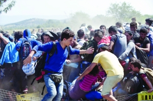短短几日,3岁叙利亚小难民艾兰·库尔迪溺亡后被冲上沙滩的照片出现在全世界几乎所有媒体上,成为欧洲难民危机爆发以来的“最揪心画面”。今年1月至8月,已有30多万名难民和非法移民经地中海进入欧洲,其中至少2600人命丧地中海。铤而走险的这30多万人里,有的是为了生计而背井离乡,还有很多像小艾兰一样的叙利亚人,他们逃离战争,向往和平,踏上一条虽有一线生机,实则生死未卜的求生之路。小艾兰悲剧给欧洲人重新审视自己的过往政策提供了一个契机,德国和奥地利已宣布临时开放边境接收难民。 8月31日,难民在希腊和马其顿边境的艾杜迈尼检查站通过铁丝网进入马其顿境内。艾杜迈尼几乎是亚非难民经由希腊前往马其顿的唯一“合法”口岸。 新华社记者 刘咏秋 摄 |