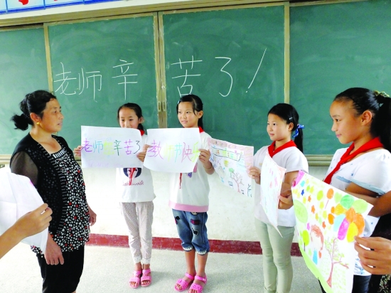9月10日,保靖县马王小学的学生给敬爱的老师送上自己亲手做的小礼物。在第31个教师节到来之际,该校学生用自制花束、贺卡献给老师,用拥抱老师、表演节目、跟老师换角色体验老师的辛苦等感谢师恩,为老师送上一份特殊的节日礼物。 俞采华 陈亚平 摄