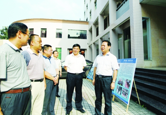 州委书记叶红专(右一)等州领导来到州教体局,就全州校园及周边治安综合治理集中整治工作进行调研。 本报记者 彭 伟 摄