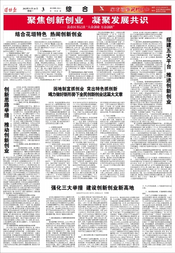 强化三大举措 建设创新创业新高地