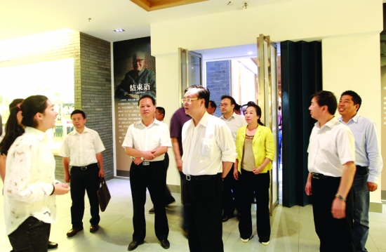 副省长李友志(左四 )一行在州委书记叶红专( 左三),州委副书记、州长郭建群(右三)等州领导陪同下考察了吉首大学。 本报记者 彭 伟 摄