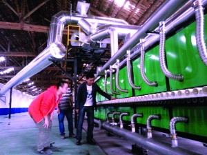 10月11日,泸溪县浦市镇马王溪村鑫隆紫砂陶瓷厂投资380多万元全新上马的陶瓷烧制设备———辊道窑正式点火预热试运行,加上与之配套建设的煤气转换站的投入使用,产能和产品质量得到了有效提高,年可生产中高端瓷器1000万件,新增就业岗位90多个,同时还实现了无烟无尘生产,环境进一步优化。图为该厂负责人与技术人员正在查看辊道窑运行情况。
