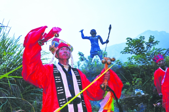 酉水边的首八峒遗址上,梯玛在祭祖。
