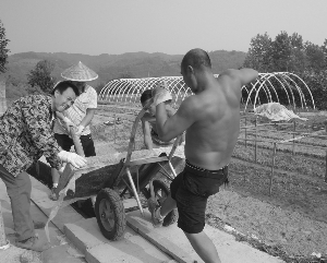 泸溪县武溪镇五里洲村是当地的蔬菜基地,村里的灌溉渠道密布。驻村工作组筹措资金,给村里的2000多米灌溉主干渠铺设活动盖板,既保护了渠道,减少了水分挥发,也增加了村民行走、劳作的安全性,受到当地村民的赞赏,称这是给渠道戴上了“安全帽”。图为10月25日,村民正在铺设渠道盖板。 章永恒 摄