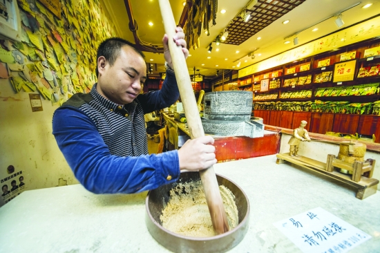 周祖辉在制作土家擂茶。 本报记者 陈 昊 摄