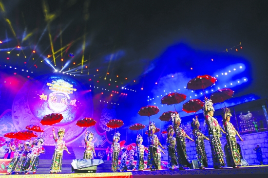 ▲2015中国·凤凰第五届苗族银饰服饰文化节的表演队身着漂亮的银饰服饰,走秀舞台,为观众呈现了一场充满浓郁民族文化气息的视觉盛宴。 本报记者 彭 伟 摄
