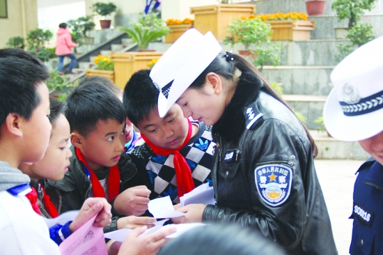 12月2日,泸溪县交警正在耐心地向学生讲解交通安全法规和安全出行常识。12月2日是第4个“全国交通安全日”。为推进“讲道路礼仪,树道路新风”文明交通体系建设,该县交警深入白沙镇思源小学开展形式多样的宣传活动,着力提高师生安全出行意识。 孙拥军 佘 珍 摄