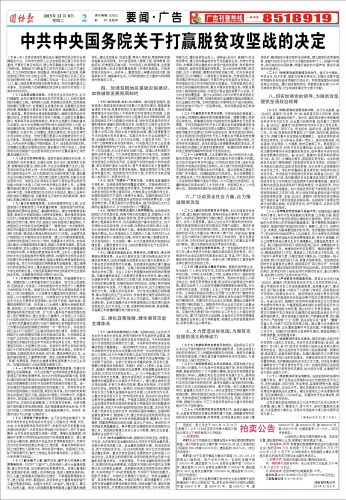 中共中央国务院关于打赢脱贫攻坚战的决定