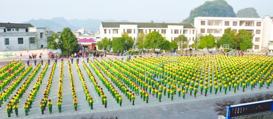 12月15日, 永顺县松柏小学学生们身穿新校服做课间操。松柏小学平时一直提倡开源节流,产生了一定的经济效益。此次该校花费10万余元为全校1600余名学生统一发放一套新校服,受到当地群众好评。 罗远程 蔡金萍 摄