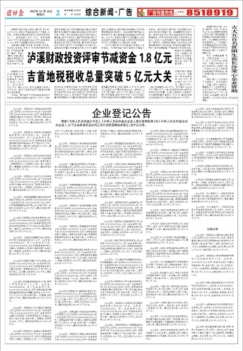 根据《中华人民共和国公司法》、《中华人民共和国企业法人登记管理条例》和《中华人民共和国合伙企业法》,以下企业经湘西自治州工商行政管理局核准登记,现予以公告。