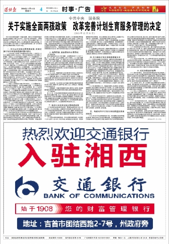 关于实施全面两孩政策 改革完善计划生育服务管理的决定