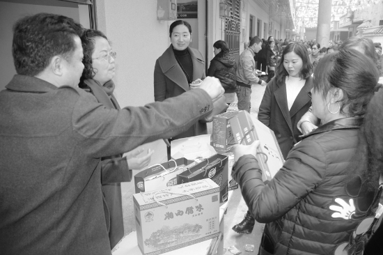 1月6日,龙山县举行门面型创新创业孵化基地启动仪式暨民俗特色产品展示展销活动,一个售卖特色农产品的摊位受到市民的关注。门面型创业孵化基地建设是该县人社部门一系列扶持全民创新创业的重要举措之一,门面建筑面积2000平方米,使用面积1500平方米,共有门面30余间,引进了27家企业创业。入驻企业可以享受到免收两年场地租金、免费提供创业培训、小额担保贴息贷款