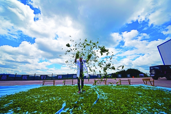 古丈县春秋有机茶业公司工人在晒茶。以古丈毛尖茶、保靖黄金茶等为代表的湘西州特色农产品,不仅富了农民的钱袋子,也成为湘西州对外宣传的一张亮丽名片。