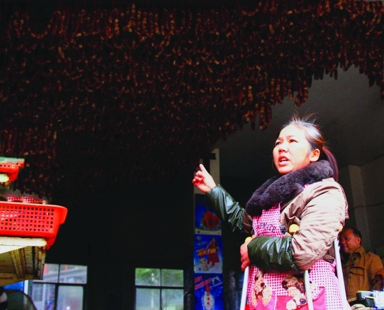 1月7日,花垣县老正街肢体残疾人杨玉英女士在介绍香肠灌制技术。入冬以来,她在该县残联的支持帮助下,学习香肠灌制技术,人们称赞她所灌的香肠口味纯正、香醇可口,本地百余名居民向她订制香肠,准备过年。她也因此获得了颇丰的收入。 张耀成 李 俊 摄