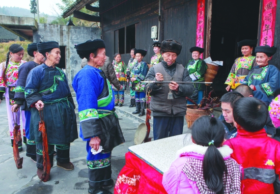 1月16日,花垣县双龙镇十八洞村妇女正在村里出售腊肉。春节临近,该村驻村扶贫工作队组织收购农户腌制好的优质腊肉,统一销往重庆市,让十八洞腊肉的香味飘得更远,村民的口袋更鼓。 龙艾青 摄
