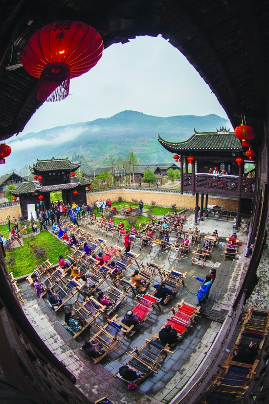 龙山县旅游特色节庆活动:土家织锦年会现场。
