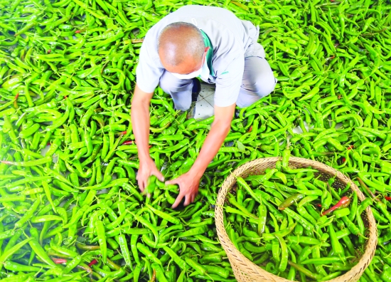 筛选青辣椒,包装送深圳。龙山县在高寒贫困山区实施精准扶贫,引导农民发展高山有机无公害蔬菜产业,产品通过电商模式实施配送、销售。