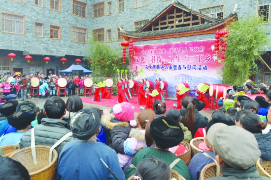1月29日,保靖县委、县政府文化科技卫生“三下乡”———文化惠民进万家暨春节慰问活动在吕洞山镇举行。县委宣传部、州直驻保靖驻村扶贫工作队,以及县民文旅局、县经信局等20多个单位组织人员来到吕洞山镇夯沙村,开展文艺演出、健康义诊、政策咨询、资料发放、春联书写等活动。 张承印 易 果 摄