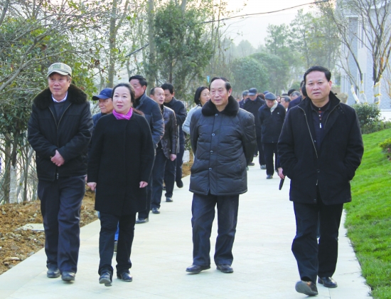 图为州委书记叶红专(右一),州委副书记、州长郭建群(左二)与州级离退休老同志考察湾溪风光带。 胡大湘 摄