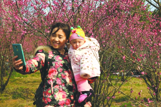 市民在吉首市民广场梅花林中赏花休闲。连日来,吉首市民广场红梅绽放,吸引了众多市民、游人前来梅花林赏花、休闲。 彭 彪 摄