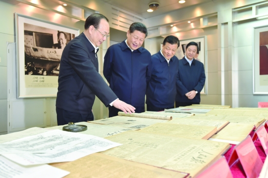 这是习近平在人民日报社了解人民日报发展历程。 新华社记者 李 涛 摄