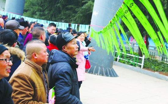 正月初二,市民们聚集在龙凤广场上猜灯谜。