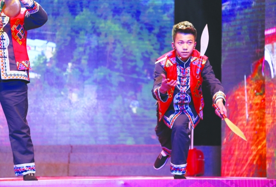 三棒鼓中抛飞刀表演。
