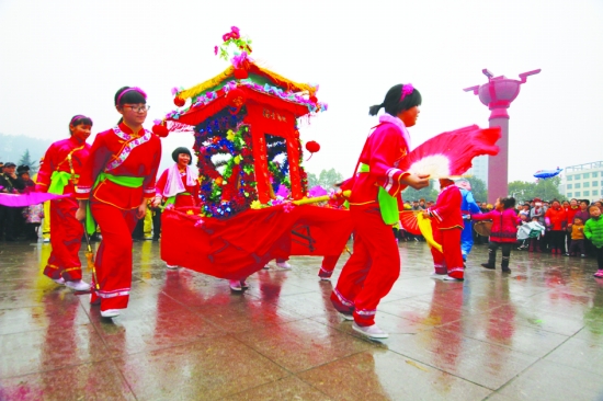 正月初五,灯会闹县城,彩莲船给全县人民拜大年。