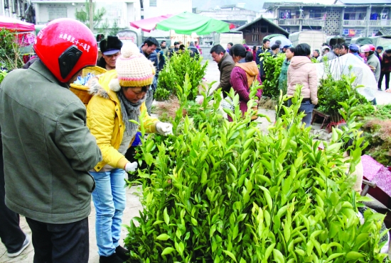 2月23日,保靖县清水坪镇的村民们正在集市上选购树苗。随着天气逐渐变暖,连日来,该镇许多农民抓住春季植树造林的大好时机,购买杉木、沙糖橘、油茶等苗木种植,在全县掀起了种树种果新热潮。近年来,保靖县高度重视生态乡村植树造林绿化工程,积极引导农民群众大力种植杉木、油茶、水果,促进农民增收。 俞采华 陈亚平 摄