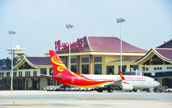 3月3日,海南航空波音737-800型客机停在博鳌机场。 当日13时,海南航空波音737-800型客机平稳地降落在新建的博鳌机场上,这标志着博鳌机场试飞圆满成功,并证明该机场已具备保障民航大型客机安全运行的能力。 新华社记者 杨冠宇 摄