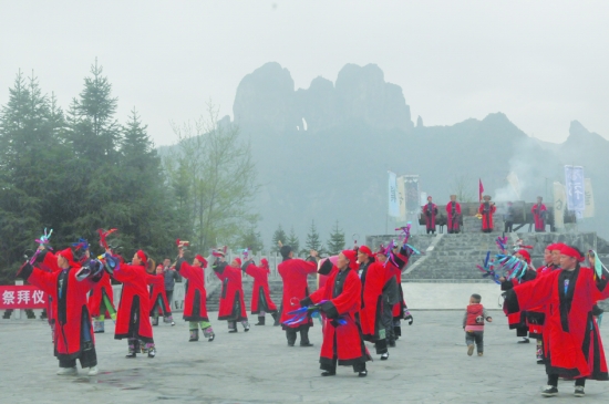 3月6日,国家3A景区吕洞山下举行保靖黄金茶开园仪式,村民跳起绺巾舞庆祝保靖黄金茶开采。保靖黄金茶是湘西稀有的茶树资源,目前种植面积6.5万亩,其中可采面积达3万亩,带动当地2万多茶农走向脱贫致富的道路。 特约记者 彭司进 通讯员 罗玉凤 摄