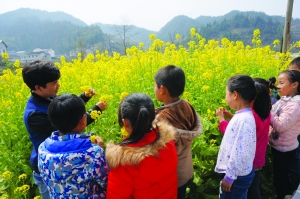 3月4日,永顺县灵溪镇吊井学校教师王朋飞,带领学生来到油菜花盛开的田野,学习观察油菜花。近年来,该校依托当地自然条件,开辟自然大课堂,每到春暖花开时节,组织带领学生深入田间地头,开展“亲近自然,感受春天”主题教育实践活动,让孩子们走出教室,在自然的课堂里,放飞希望、愉悦心情、快乐学习。 通讯员 吴 华 摄