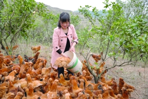 3月19日,泸溪县达岚镇麻坪村村民李冬青正在给鸡喂食玉米。去年夏天,在外务工的她与丈夫程宏强筹资近20万元,承包180多亩荒山办起了原生态养殖场,专门饲养中华宫廷黄鸡。目前,已成功养殖6000多羽,养殖场初具规模。返乡创业的夫妻俩表示,要用生态散养的方式,养出绿色健康的鸡,把大山深处的美味和美丽“乡愁”端上消费者餐桌。 本报记者 谭必文 左 俊 摄