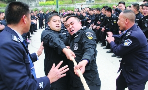 为丰富警营文化生活,激发广大民警、辅警参与体能练兵的热情,3月13日至16日,龙山县公安局举行了第六届警体运动会。四天时间里,共有9支代表队500余名运动员分别参加了篮球、羽毛球、趣味接力赛、拔河、射击、三公里武装越野等7个集体比赛项目。最终,交巡警大队荣获团体总分第一名。图为比赛现场。 邹 玮 摄
