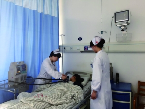 一次夜班查房时,发现一位患者半靠在床头上,呼吸有点急促,她马上叫醒病人家属,询问刚才病人的情况,通过咨询查看,发现病人有白色泡沫痰,已处于昏迷状态,她立即组织给病人吸痰、上氧,开放静脉通路,同时通知医生进行抢救。由于发现得早,抢救及时,病情很快就得到控制,成功将病人从死亡边缘拉了回来,当时已经是凌晨两点多钟了,虽然筋疲力尽,但看到病人转危为安,她的心中有一种说不出的喜悦。