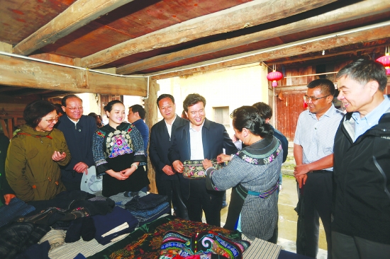 全国政协副主席王正伟(前排左五)率全国政协特邀常委视察团一行来到凤凰县山江镇老家寨村,就武陵山片区精准扶贫工作进行视察调研。 本报记者 彭 伟 摄