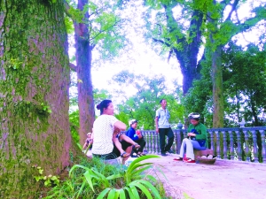 5月15日,泸溪县洗溪镇芭蕉坪村,村民正在寨中的古树群下纳凉休息。芭蕉坪村已有近700年历史,是该县重点保护传统特色村落。一直以来,该村村民通过制定村规民约等形式,相互监督自觉护绿,护出了“青山环抱、古树成群”的生态美景。