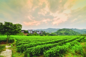 5月12日傍晚,绚丽的晚霞掩映着古丈县古阳镇树栖柯村,绿水青山,茶园人家,美景如画。