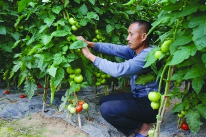 6月2日下午,永顺县灵溪镇吊井村大棚蔬菜基地,“春明蔬菜专业合作社”社员彭武明,正在大棚里查看西红柿挂果和成熟情况。今年,该基地加强技术管理和病虫害防治,种植的“金石王子”西红柿进入丰产期,目前百亩西红柿果繁叶茂,丰收在望。近年来,该县把蔬菜产业作为精准脱贫的一大支柱产业来抓,将西红柿种植纳入农业产业扶持范畴,加强西红柿种植引导,切实提高西红柿产品的科技含量和市场竞争力,促进了菜农增收致富。