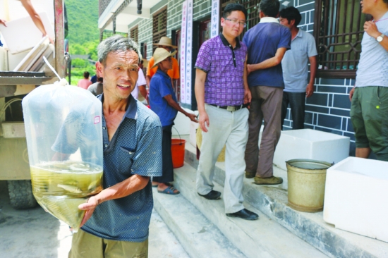 日前,龙山县委组织部扶贫工作组、县扶贫办、县畜牧水产局等相关工作人员,来到洗车河镇西吴村为60户村民免费发放雄鱼、草鱼等鱼苗3万尾,同时邀请养殖专家进行现场指导,大力推进稻田综合种养,积极发展产业,实施精准扶贫,帮助脱贫致富。 覃占波 摄